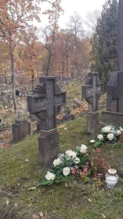 2024-10-31 Antakalnio kapinėse. Prie eil. Jono Žiobos ir Jono Vyšniausko kapų