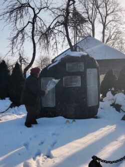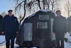 Po laidotuvių LKKSS nariai stabtelėjo Juknėnų kaimo centre ir padėjo gėlių prie velionio rūpesčiu pastatyto paminklo Juknėnų partizanams atminti.