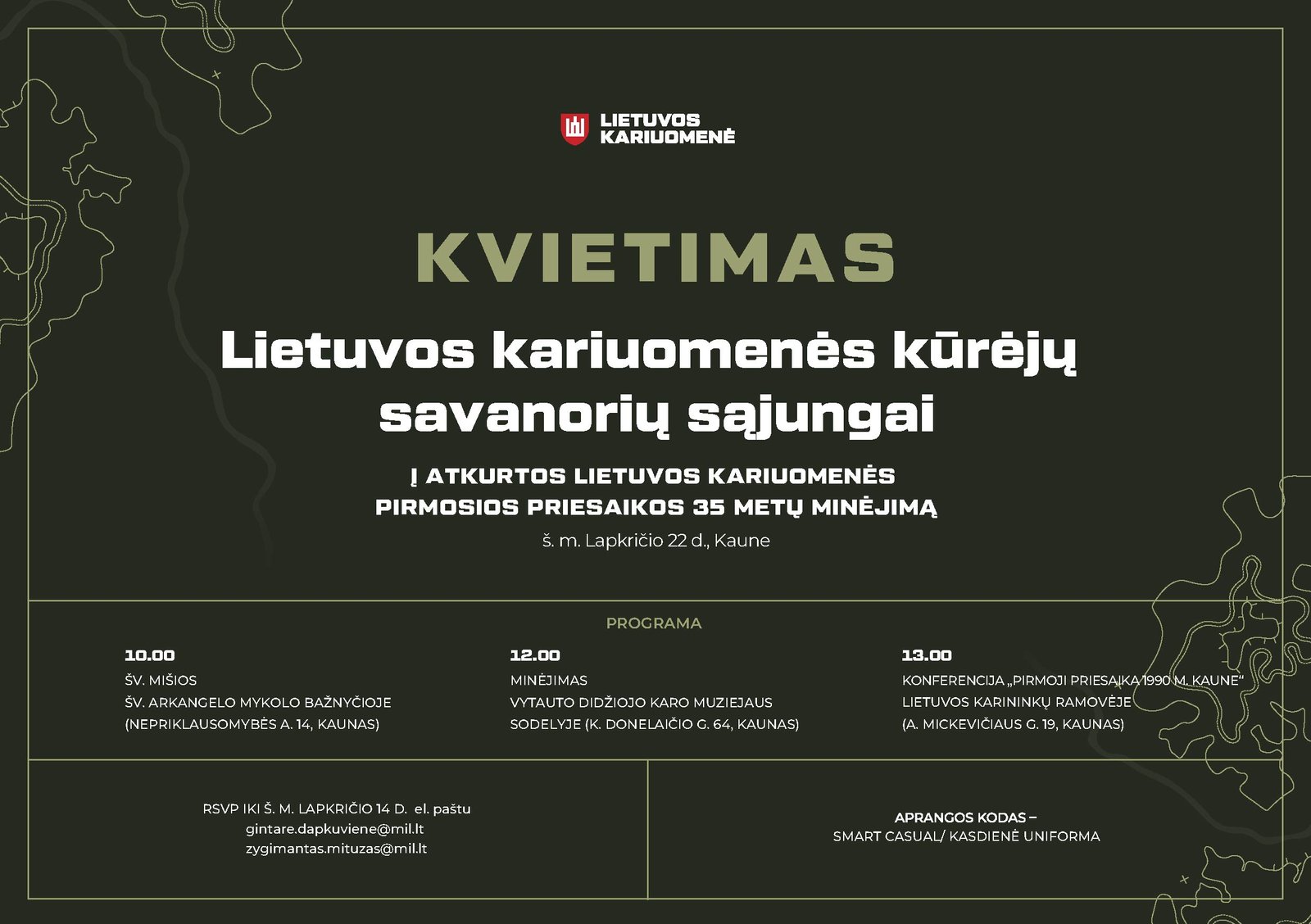 Lietuvos kariuomenė kviečia Lietuvos kariuomenės kūrėjų savanorių sąjungą į atkurtos Lietuvos kariuomenės pirmosios priesaikos 35 metų minėjimą, kuris vyks š. m. lapkričio 22 d. Kaune.