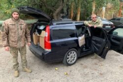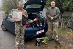Vyko Eugeno Konovaleco labdaros ir paramos fondo direktorius Arūnas Surdokas, savanoriai Narimantas Savickas ir Donaldas Kulevičius. Ramai ir saugiai nuvažiuota apie 4 700 km. Technika nelūžo. Automobiliai, parama, „paukščiukai“, uniformos ,vitaminai, metalo detektoriai, nešiojam įkrovikliai (Power bank) ir visa kita pristatyti ten, kur buvo pažadėta. Arūnas su savanoriais Donaldu ir Narimantu nuvyko į Lyptsi, į nulinę zoną, kur taip pat šį bei tą perdavė, nufotografavo nuotraukų atminčiai ir būsimai parodai.