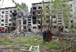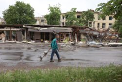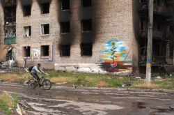 Dar viena maža salelė, kurioje vos rusena gyvybė fpv dronų, artilerijos ir KAB-ų jūros vidury. Juodi dūmų stulpai ryto pilkumoje, aviacinių bombų šlamesys, nuolatinis artilerijos darbas pakraščiuose ir dangus… Dangus, žvangantis dronų varikliais. Patartina neišlįsti iš po medžių į atvirą erdvę. Bet vietiniai nebekreipia į tai dėmesio. Pamėkliškai po miestą slankioja žmonės-šešėliai su vežimėliais ir rateliais. Kažkas bando gauti vandens, kažkas bando nusigauti į vis dar veikiančią parduotuvę. Mieste netgi yra turgus… O visai šalia ištuštėję kvartalai su po atakos rūkstančiais daugiaaukščiais. Įkaušęs dėdulė bando palaikyti pokalbį pakeliui link humanitarinės paramos, kuri kažkaip vis dar čia patenka. Veislinis šuva palydi alkanu žvilgsniu… Miestas vaiduoklis pasineria į dar vieną neramią naktį.