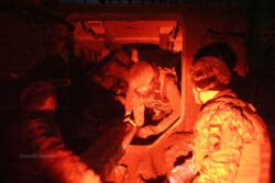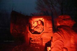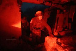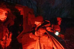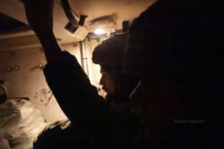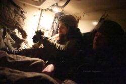 Nuovargis jaučiamas kiekviename judesyje. Akys blizga lyg karščiuotų. Jie daugiau nei savaitę gynė liniją prie Pokrovsko. Minosvaidžiai, sklendžiančios bombos, artilerija, FPV dronai, kartais net antpuoliai – kiekvienas paliko savo žymę. „Vikingas“ pasuka, o mes skubam tolyn nuo fronto linijos. Priešais jūrų pėstininkas rūko vieną cigaretę po kitos. Iškrauta būda vartosi nuo vieno šono link kito ir oras prisipildo aitrios iš besivartančio generatoriaus besilaistančio benzino smarvės. Kulkosvaidžio juosta žvanga ir šokinėja ant grindų. Viskas juda ir tenka nepritvirtintus daiktus prilaikyti rankomis ir kojomis. Po kurio laiko lėkimas baigiasi, vėl girdisi vikšrų grikšėjimas ant asfalto. Augantis santykinio saugumo jausmas. Mašina lėtėja. Mes vietoje. Atsisveikiname su pavargusiais vaikinais. Dabar jiems svarbiausia susisiekti su giminaičiais, nuplauti apkasų purvą ir kristi miegoti.